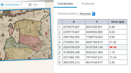 Get coordinates and accuracy for individual points in selected transformation and map projection. It helps you to identify wrongly placed points